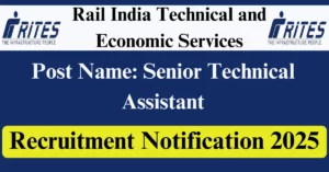 RITES Recruitment 2025 Apply for 600 Senior Technical Assistant Vacancies in All India location. Rail India Technical and Economic Services Officials are recently published a job notification to fill up 600 Posts through Online mode. All the eligible aspirants can check the RITES career official website i.e., rites.com recruitment 2025. The last date to Apply Online on or before 12-Nov-2025.