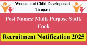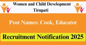 WCD Tirupati Recruitment 2025 – Apply Offline for 9 Cook, Educator Posts