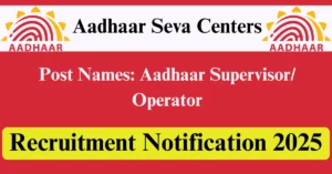 Aadhaar Seva Centers Recruitment 2025 – Apply Online for 203 Aadhaar Supervisor/ Operator Posts