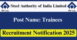 SAIL Recruitment 2025 Apply for 112 Trainees Vacancies in Sundargarh – Odisha location. Steel Authority of India Limited Officials are recently published a job notification to fill up 112 Posts through Online mode. All the eligible aspirants can check the SAIL career official website i.e., sail.co.in recruitment 2025. The last date to Apply Online on or before 30-Sep-2025.