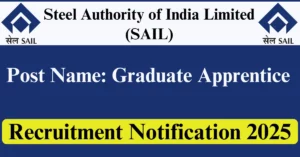 SAIL Recruitment 2025 Apply for 2 Graduate Apprentice Vacancies in Kolkata – West Bengal location. Steel Authority of India Limited Officials are recently published a job notification to fill up 2 Posts through Online mode. All the eligible aspirants can check the SAIL career official website i.e., sail.co.in recruitment 2025. The last date to Apply Online on or before 02-Nov-2025.