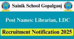 Sainik School Gopalganj Recruitment 2025 Apply for 3 Librarian, LDC Vacancies in Gopalganj – Bihar location. Sainik School Gopalganj Officials are recently published a job notification to fill up 3 Posts through Offline mode. All the eligible aspirants can check the Sainik School Gopalganj career official website i.e., ssgopalganj.in recruitment 2025. The last date to Apply Offline on or before 21-Dec-2025.