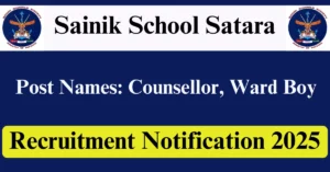 Sainik School Satara Recruitment 2025 Apply for 5 Counsellor, Ward Boy Vacancies in Satara – Maharashtra location. Sainik School Satara Officials are recently published a job notification to fill up 5 Posts through Offline mode. All the eligible aspirants can check the Sainik School Satara career official website i.e., sainiksatara.org recruitment 2025. The last date to Apply Offline on or before 30-Sep-2025.