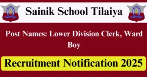 Sainik School Tilaiya Recruitment 2025 Apply for 2 Lower Division Clerk, Ward Boy Vacancies in Koderma – Jharkhand location. Sainik School Tilaiya Officials are recently published a job notification to fill up 2 Posts through Offline mode. All the eligible aspirants can check the Sainik School Tilaiya career official website i.e., sainikschooltilaiya.org recruitment 2025. The last date to Apply Offline on or before 09-Aug-2025.