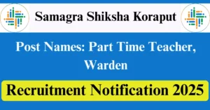 Samagra Shiksha Koraput Recruitment 2025 Apply for 41 Part Time Teacher, Warden Vacancies in Koraput – Odisha location. Samagra Shiksha Koraput Officials are recently published a job notification to fill up 41 Posts through Offline mode. All the eligible aspirants can check the Samagra Shiksha Koraput career official website i.e., koraput.odisha.gov.in recruitment 2025. The last date to Apply Offline on or before 28-Aug-2025.
