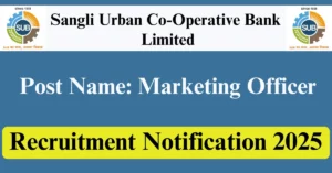 Sangli Urban Bank Recruitment 2025 Apply for Various Marketing Officer Vacancies in Sangli, Kolhapur – Maharashtra location. Sangli Urban Co-Operative Bank Limited Officials are recently published a job notification to fill up Various Posts through Offline mode. All the eligible aspirants can check the Sangli Urban Bank career official website i.e., sangliurban.bank.in recruitment 2025. The last date to Apply Offline on or before 16-Dec-2025.