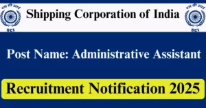 SCI Recruitment 2025 Apply for 1 Administrative Assistant Vacancies in Delhi – New Delhi location. Shipping Corporation of India Officials are recently published a job notification to fill up 1 Posts through Online mode. All the eligible aspirants can check the SCI career official website i.e., shipindia.com recruitment 2025. The last date to Apply Online on or before 05-Jun-2025.