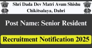 SDDMASC Recruitment 2025 Apply for 18 Senior Resident Vacancies in Delhi – New Delhi location. Shri Dada Dev Matri Avum Shishu Chikitsalaya, Dabri Officials are recently published a job notification to fill up 18 Posts through Walkin mode. All the eligible aspirants can check the SDDMASC career official website i.e., health.delhi.gov.in recruitment 2025. The last date to attend for Walk-in-interview on 03-Dec-2025.