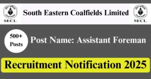 SECL Recruitment 2025 Apply for 543 Assistant Foreman Vacancies in Bilaspur – Chhattisgarh location. South Eastern Coalfields Limited Officials are recently published a job notification to fill up 543 Posts through Online mode. All the eligible aspirants can check the SECL career official website i.e., secl-cil.in recruitment 2025. The last date to Apply Online on or before 09-Nov-2025.