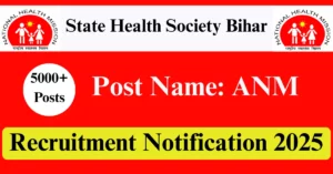 SHS Bihar Recruitment 2025 Apply for 5006 ANM Vacancies in Bihar location. State Health Society Bihar Officials are recently published a job notification to fill up 5006 Posts through Online mode. All the eligible aspirants can check the SHS Bihar career official website i.e., shs.bihar.gov.in recruitment 2025. The last date to Apply Online on or before 28-Aug-2025.