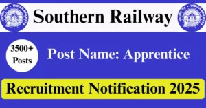 Southern Railway Recruitment 2025 Apply for 3518 Apprentice Vacancies in Thiruvananthapuram, Palakkad – Kerala, Coimbatore, Salem, Madurai, Tiruchirappalli, Chennai – Tamil Nadu location. Southern Railway Officials are recently published a job notification to fill up 3518 Posts through Online mode. All the eligible aspirants can check the Southern Railway career official website i.e., sr.indianrailways.gov.in recruitment 2025. The last date to Apply Online on or before 25-Sep-2025.