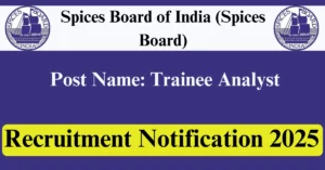 Spices Board Recruitment 2025 Apply for 2 Trainee Analyst Vacancies in Cochin – Kerala location. Spices Board of India Officials are recently published a job notification to fill up 2 Posts through Walkin mode. All the eligible aspirants can check the Spices Board career official website i.e., indianspices.com recruitment 2025. The last date to attend for Walk-in-interview on 14-Aug-2025.
