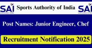 Sports Authority of India Recruitment 2025 Apply for 10 Junior Engineer, Chef Vacancies in All India location. Sports Authority of India Officials are recently published a job notification to fill up 10 Posts through Online mode. All the eligible aspirants can check the Sports Authority of India career official website i.e., sportsauthorityofindia.nic.in recruitment 2025. The last date to Apply Online on or before 18-Jun-2025.