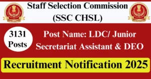 SSC Recruitment 2025 Apply for 3131 LDC/Junior Secretariat Assistant & DEO Vacancies in All India location. Staff Selection Commission Officials are recently published a job notification to fill up 3131 Posts through Online mode. All the eligible aspirants can check the SSC career official website i.e., ssc.gov.in recruitment 2025. The last date to Apply Online on or before 18-Jul-2025.
