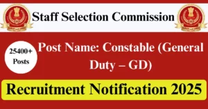 SSC Recruitment 2025 Apply for 25487 Constable (General Duty – GD) Vacancies in All India location. Staff Selection Commission Officials are recently published a job notification to fill up 25487 Posts through Online mode. All the eligible aspirants can check the SSC career official website i.e., ssc.gov.in recruitment 2025. The last date to Apply Online on or before 31-Dec-2025.