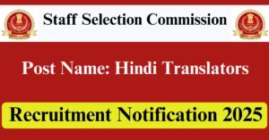 SSC Recruitment 2025 Apply for 437 Hindi Translators Vacancies in All India location. Staff Selection Commission Officials are recently published a job notification to fill up 437 Posts through Online mode. All the eligible aspirants can check the SSC career official website i.e., ssc.gov.in recruitment 2025. The last date to Apply Online on or before 26-Jun-2025.