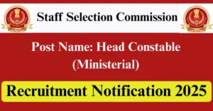 SSC Recruitment 2025 Apply for 509 Head Constable (Ministerial) Vacancies in All India location. Staff Selection Commission Officials are recently published a job notification to fill up 509 Posts through Online mode. All the eligible aspirants can check the SSC career official website i.e., ssc.gov.in recruitment 2025. The last date to Apply Online on or before 20-Oct-2025.