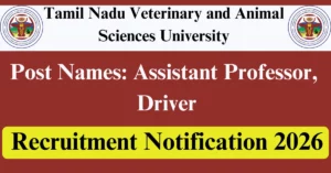 TANUVAS Recruitment 2025 Apply for 110 Assistant Professor, Driver Vacancies in Chennai – Tamil Nadu location. Tamil Nadu Veterinary and Animal Sciences University Officials are recently published a job notification to fill up 110 Posts through Offline mode. All the eligible aspirants can check the TANUVAS career official website i.e., tanuvas.ac.in recruitment 2025. The last date to Apply Offline on or before 19-Jan-2026.