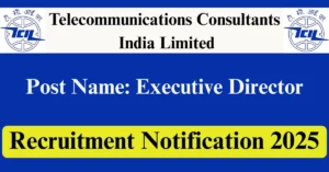 TCIL Recruitment 2025 Apply for 1 Executive Director Vacancies in Delhi – New Delhi location. Telecommunications Consultants India Limited Officials are recently published a job notification to fill up 1 Posts through Offline mode. All the eligible aspirants can check the TCIL career official website i.e., tcil.net.in recruitment 2025. The last date to Apply Offline on or before 02-Dec-2025.