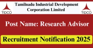 TIDCO Recruitment 2025 Apply for 2 Research Advisor Vacancies in Coimbatore, Madurai – Tamil Nadu location. Tamilnadu Industrial Development Corporation Limited Officials are recently published a job notification to fill up 2 Posts through Online mode. All the eligible aspirants can check the TIDCO career official website i.e., tidco.com recruitment 2025. The last date to Apply Online on or before 20-Dec-2025.