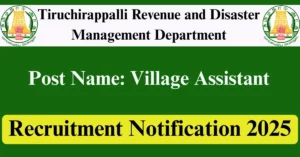 Tiruchirappalli RDM Recruitment 2025 Apply for 104 Village Assistant Vacancies in Tiruchirappalli – Tamil Nadu location. Tiruchirappalli Revenue and Disaster Management Department Officials are recently published a job notification to fill up 104 Posts through Offline mode. All the eligible aspirants can check the Tiruchirappalli RDM career official website i.e., tiruchirappalli.nic.in recruitment 2025. The last date to Apply Offline on or before 21-Aug-2025.