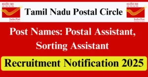 TN Postal Circle Recruitment 2025 Apply for 202 Postal Assistant, Sorting Assistant Vacancies in Tamil Nadu location. Tamil Nadu Postal Circle Officials are recently published a job notification to fill up 202 Posts through Offline mode. All the eligible aspirants can check the TN Postal Circle career official website i.e., tamilnadupost.cept.gov.in recruitment 2025. The last date to Apply Offline on or before 02-Jul-2025.