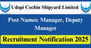 UCSL Recruitment 2025 Apply for 02 Manager, Deputy Manager Vacancies in Udupi – Karnataka location. Udupi Cochin Shipyard Limited Officials are recently published a job notification to fill up 02 Posts through Online mode. All the eligible aspirants can check the UCSL career official website i.e., udupicsl.com recruitment 2025. The last date to Apply Online on or before 14-Aug-2025.