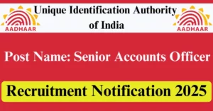 UIDAI Recruitment 2025 Apply for 2 Senior Accounts Officer Vacancies in Delhi – New Delhi, Guwahati – Assam location. Unique Identification Authority of India Officials are recently published a job notification to fill up 2 Posts through Offline mode. All the eligible aspirants can check the UIDAI career official website i.e., uidai.gov.in recruitment 2025. The last date to Apply Offline on or before 22-Dec-2025.