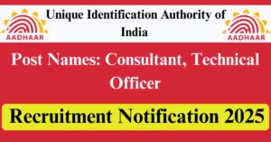 UIDAI Recruitment 2025 Apply for 4 Consultant, Technical Officer Vacancies in Bangalore – Karnataka, Hyderabad – Telangana location. Unique Identification Authority of India Officials are recently published a job notification to fill up 4 Posts through Offline mode. All the eligible aspirants can check the UIDAI career official website i.e., uidai.gov.in recruitment 2025. The last date to Apply Offline on or before 23-Jul-2025.