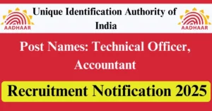 UIDAI Recruitment 2025 Apply for 10 Technical Officer, Accountant Vacancies in Delhi – New Delhi location. Unique Identification Authority of India Officials are recently published a job notification to fill up 10 Posts through Offline mode. All the eligible aspirants can check the UIDAI career official website i.e., uidai.gov.in recruitment 2025. The last date to Apply Offline on or before 01-Aug-2025.