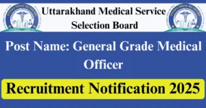 UKMSSB Recruitment 2025 Apply for 287 General Grade Medical Officer Vacancies in Uttarakhand location. Uttarakhand Medical Service Selection Board Officials are recently published a job notification to fill up 287 Posts through Online mode. All the eligible aspirants can check the UKMSSB career official website i.e., ukmssb.org recruitment 2025. The last date to Apply Online on or before 10-Dec-2025.