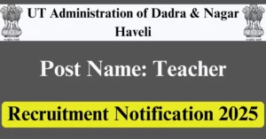 UT Administration of Dadra & Nagar Haveli Recruitment 2025 Apply for 281 Teacher Vacancies in Dadra and Nagar Haveli, Daman and Diu location. UT Administration of Dadra & Nagar Haveli Officials are recently published a job notification to fill up 281 Posts through Online mode. All the eligible aspirants can check the UT Administration of Dadra & Nagar Haveli career official website i.e., ddd.gov.in recruitment 2025. The last date to Apply Online on or before 01-Jan-2026.